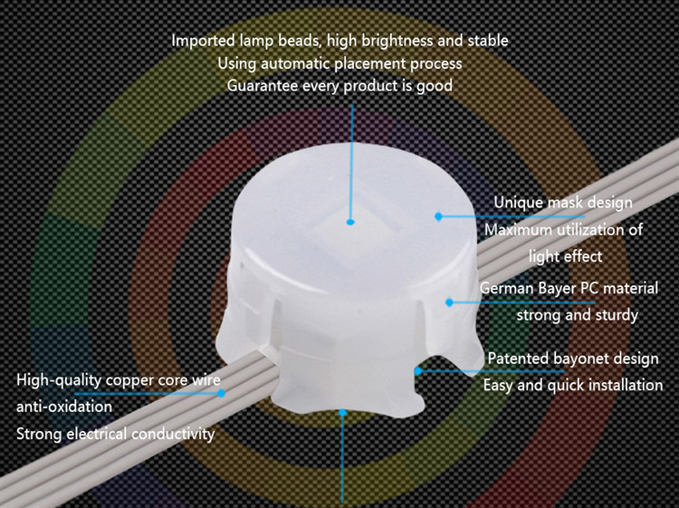 | เน้น | ไฟ LED พิกเซล RGB กลางแจ้ง,ไฟ LED พิกเซล SMD5050 20 มม.,ไฟ LED พิกเซล DC05V IP67 |