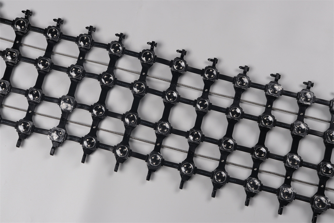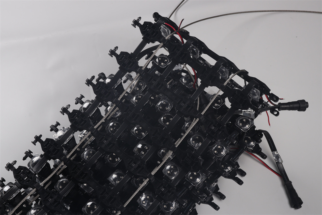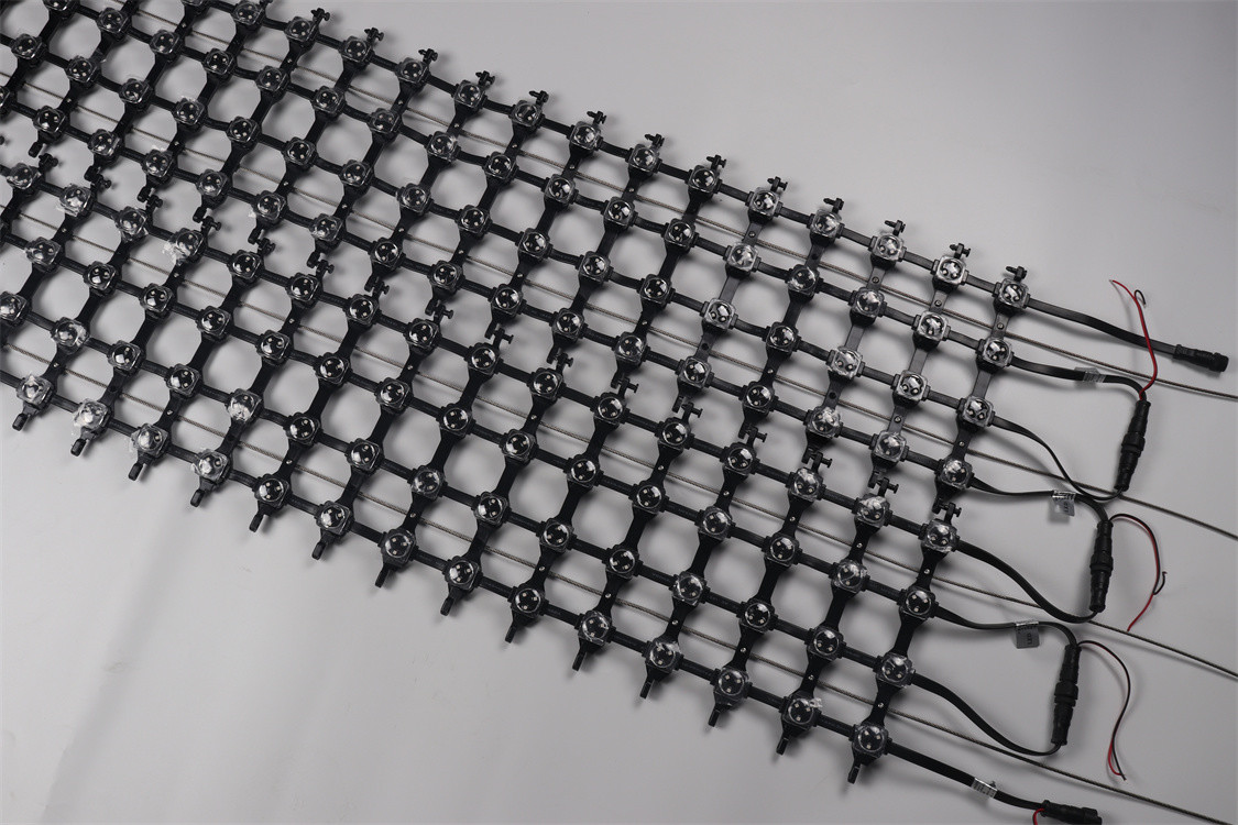 A: LED Mesh Curtain ประกอบด้วยแผ่น LED แต่ละแผ่นที่เชื่อมต่อกันด้วยสายไฟสี, และรูปแบบของการแสดง.
